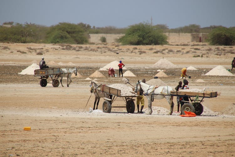 Rather than repeat the coastal route for the drive south, I took the more inland route of the main highway. Although this was equivalent in distance, it was a faster, easier drive as the condition of the road was excellent for almost the entire way and there were fewer settlements to slow progress. Having said that, the extensive salt mining on the evaporation flats just south of Saint-Louis were fascinating and certainly justified my short stop there.