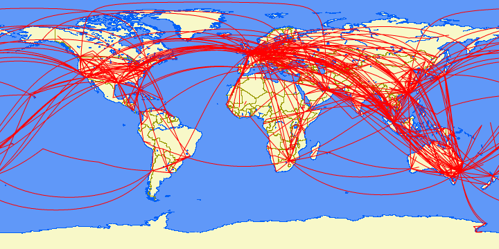 This page shows maps of all my flights on a cumulative basis (in chronological order). Each map can be enlarged by clicking, or by clicking the ‘Play Slideshow’ button below. Maps were generated using the Great Circle Mapper - copyright © Karl L. Swartz.