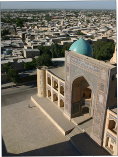The view from the top of the minaret after the steep climb of 105 steps was fantastic, giving a clear view of the entire old town and the newer Soviet-era urban development beyond. In fact, Andy and I were so impressed with the view that returned late in the afternoon at a little before 6 pm to enjoy the view in the golden afternoon sunlight.