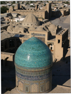 The Kalon Mosque opposite also had a brilliant tiled façade that matched the deep blue of the cloudless sky perfectly. The Kalon was a huge, functioning mosque, able to accommodate 10,000 people, and it was quite an awesome experience to walk through its magnificently decorated open courtyard. Both the madrassa and the mosque dated from the 16th century, but were in excellent condition.