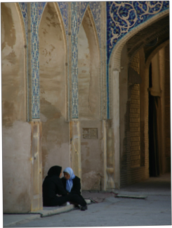 Our final stop in Esfahan was at Iran's largest mosque, the Jameh (or 'Friday') Mosque. Built in stages between the 1100s and 1400s, the mosque covered over 20,000 square metres in various architectural styles. In the middle of the main courtyard was an ablutions fountain designed to replicate or imitate Mecca. During our walk around, we were invited into a small room at the side of the main courtyard known as the Room of Sultan Uljaitu where we saw an exquisite carved timber nave with fine Koranic inscriptions, apparently made in 1448 and still in great condition.