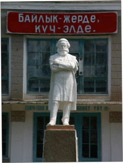 We arrived in Bishkek at about 4:00 pm, and proceeded first to our hotel, the Silk Road Lodge, perhaps the most comfortable night of our trip. The aim was to check in and proceed immediately to the State Historical Museum, but as our rooms were not yet ready, we went immediately to Ala-Too Square, which marks the city centre. The square used to be dominated by a large statue of Lenin, but this was recently replaced by a statue of Freedom. Unlike many other ex-Soviet cities, however, Lenin was not removed in Bishkek, just relocated, in this case to a smaller but nonetheless significant square one block away. After walking through Ala-Too Square and seeing the Freedom Statue and its associated fountains, Andy and I went around the back of the State Historical Museum to see the statue of Lenin before then returning to go inside the Museum.