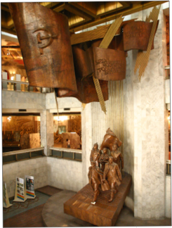 The top floor of the museum traced the history of humanity according to the Marxist sequence of collectivism, serfdom, feudalism, capitalism, socialism and, the final highest stage of development, communism. The middle floor of the museum was pure Leninism, comprising fabulous bronze sculptures in the socialist-realist style, amazing ceiling paintings showing revolutionary scenes, all supplemented by photos of Lenin's life. The story seems to stop just prior to Stalin's rise to power, so the significant but perhaps less revolutionary aspects of Soviet history under Stalin, Krushchev, Brezhnev, Andripov, Chernenko and Gorbachev are notably absent.
