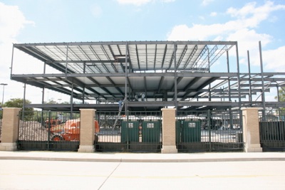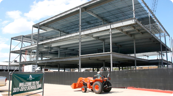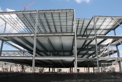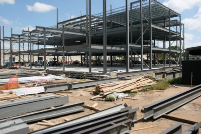 Two weeks ago, this was just a concrete slab. The pace of construction of our new classroom block is nothing short of astounding. The views on this page show the new building last Friday (2nd September).