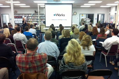 On Wednesday evening, we hosted a well attended meeting in our Library at which we launched +Works (pronounced ‘Positive Works’) at Awty.