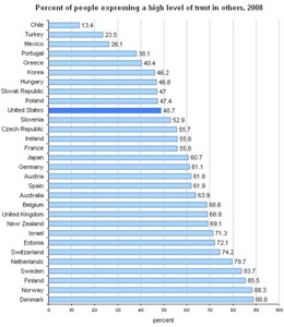 That comment made me curious, so I did some research after returning to Houston, and I found some evidence to support this claim (see graphic to the right, which comes from http://blogs-images.forbes.com/erikkain/files/2011/05/trust.jpg and which can be clicked to enlarge).  If this graphic is true, it may be a difficult task indeed for us to enjoy the excellence of education that Finland exemplifies – although I do not believe that this should prevent us from making the effort.