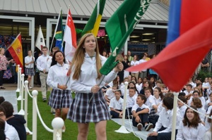 The ceremony began with the very moving parade of flags, in which every one of our Grade 12 students carried a flag which honored the presence of the almost 60 nationalities of students currently at Awty, plus many of the nationalities of former students.