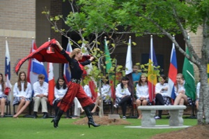 The main part of the International Festival took place on Thursday and Friday this week.  It began with a ceremony in our Courtyard attended by many of the consuls and consuls-general who are based in Houston, including Mr Frederic Bontems, the Consul-General of France and an Awty board member, and Mr Daniel Deodato, the Consul-General of Argentina, the country that was being especially recognized at this year’s International Festival.  Other diplomats present represented Austria, Belgium,