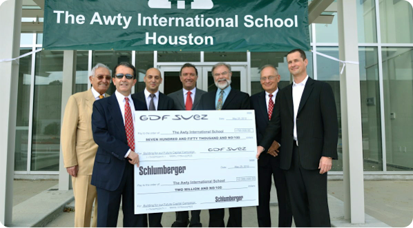 We were delighted to receive two significant gifts this week that will move us forward significantly towards being able to start the next phase of our building plans. Thank you to Mr Patrick Schorn (shown at the right of this photo) who presented a pledge for $2 million on behalf of Schlumberger, and thank you to Dr Zin Smati (shown at the front left of this photo) who presented a pledge for $750,000 on behalf of GDF-Suez. Awty is very grateful to you both!