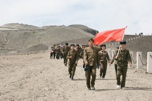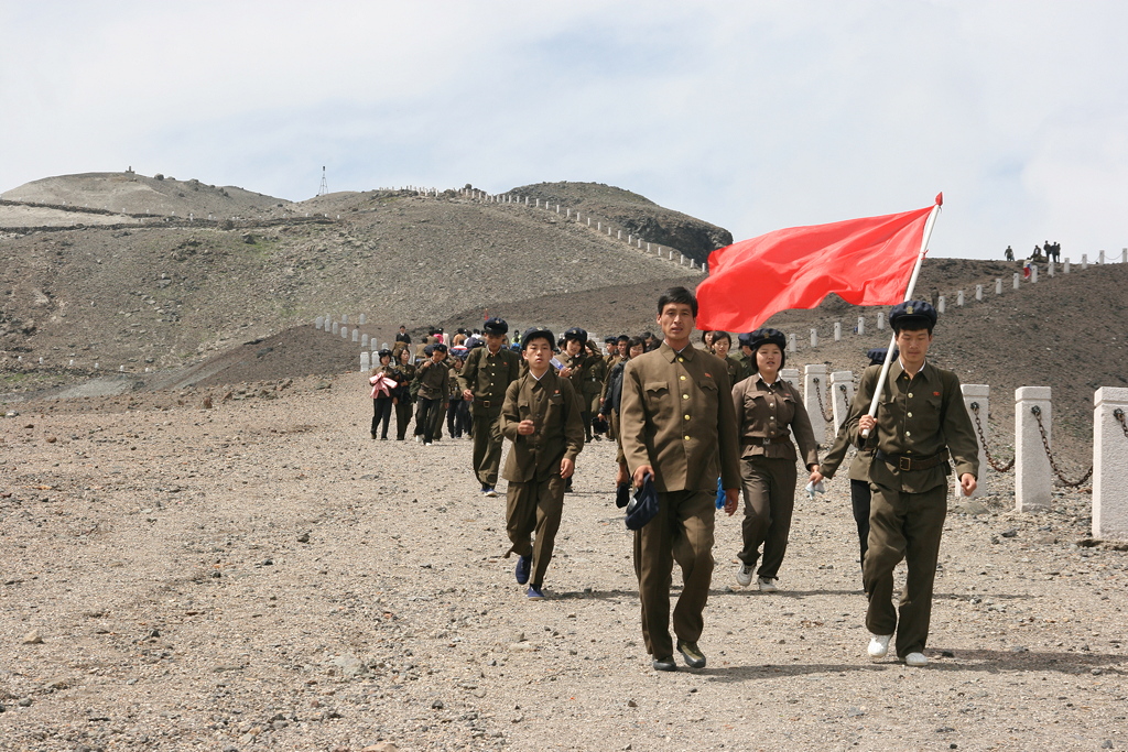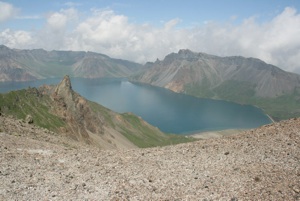 Further north along the Chinese-DPRK border is Mount Paektu (or Changbai Shan to the Chinese).  Mount Paektu is a volcano that straddles the border between North Korea and China, and is regarded by all Koreans (North and South) as the sacred mountain that gave birth to the Korean people.  More significantly to North Koreans, the slopes of Mount Paektu housed the secret base camp from which Kim Il Sung waged his anti-Japanese struggle during World War II.  As such, it was also the alleged birthplace of Kim Jong Il (although most overseas commentators claim he was born in the same place as his mother was