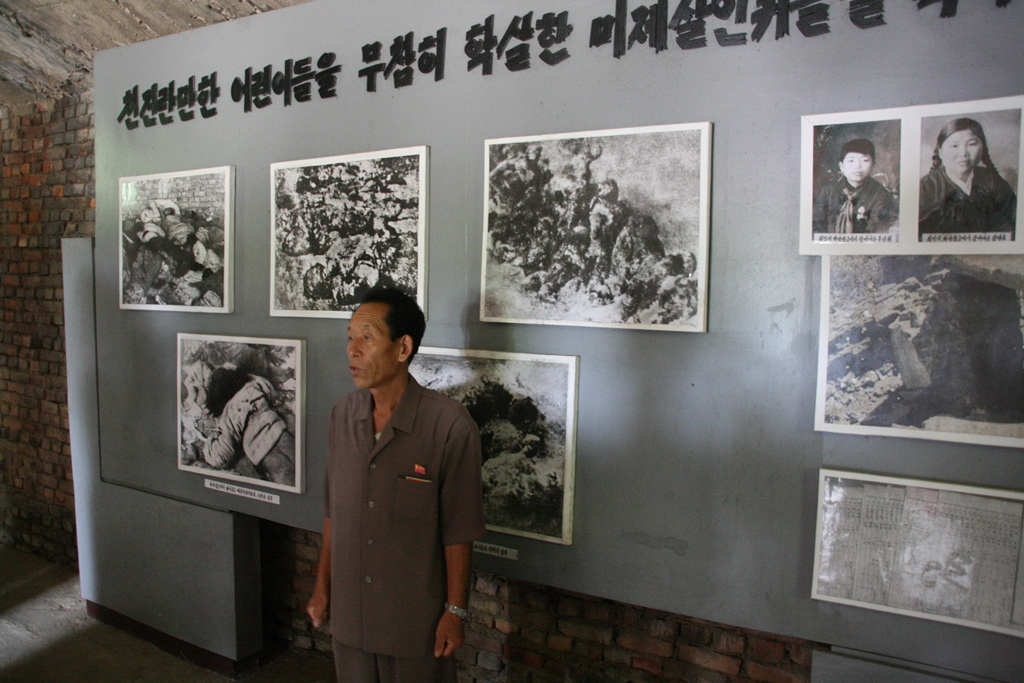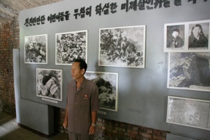 In a small town called Sinchon near the border between the two Koreas, the North Koreans have built what must be one of the world’s most harrowing and gruesome museums.  Known as the Sinchon Museum of American War Atrocities, the museum documents and conveys the story of an alleged series of massacres which resulted in 35,383 Korean civilians being killed in 52 days during 1950 by the US 8th Army.  Illustrated by grainy photographs and unambiguously trenchant oil paintings, the