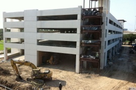 Although we were hoping that the new 440-space parking garage would be ready for the start of the new term, heavy rains in Houston during summer have pushed back our opening date by several weeks. The structure is almost complete, with the stairs and elevator towers being the main areas that require more work. We will be pouring the rest of the external concrete paving this week, and the photos below give some idea of the progress made up to last Friday. Like everyone else at Awty, I can’t wait for this wonderful new facility to be ready for use.