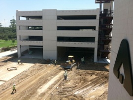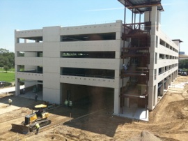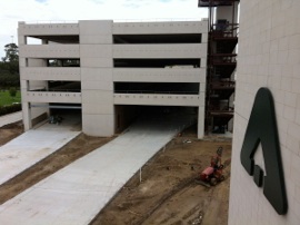 On a totally different note, I was thrilled with the progress made on the construction of our new multi-storey parking garage this week.  How that the concrete driveways have been poured, I am hopeful that we can start using the ground level facilities, including the new carpool lanes and student “kiss-and-drop” areas as soon as the concrete has had the required one week to harden.  Together with the completion of some pedestrian pathways, this should mean we can start using the new dropoff zone from the first Tuesday in September (the day after the Labor Day holiday).  The photos below show some aspects of the impressive progress made this week.