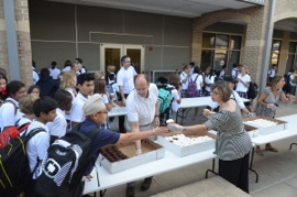 This has been an important week for our new students.  Tuesday was designated as Newcomers’ Day, and was celebrated by distributing cupcakes to all the new students.  The photos below show some of the scenes from last Tuesday.