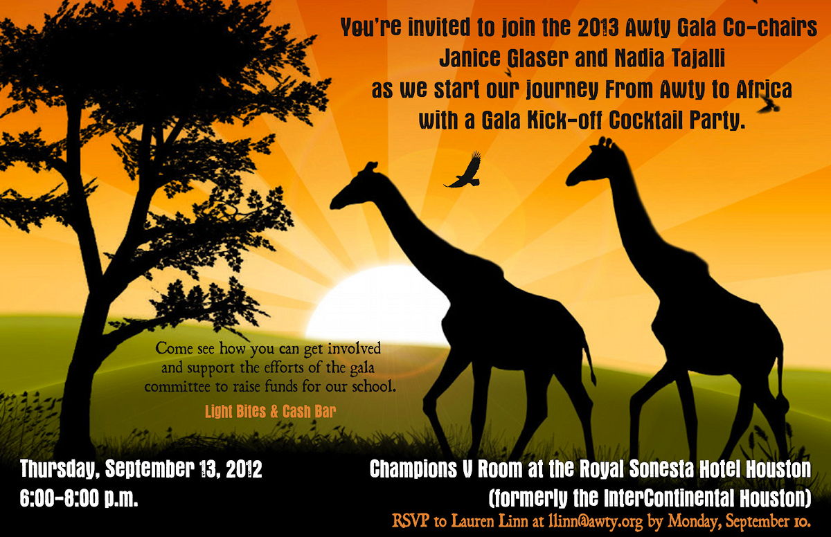 I was unable to join any of the Fall Trips this year because of an important commitment I had on Thursday evening to attend the launch of our 2013 Gala.  Although the Gala is still several months away (it will be held on 23rd February 2013), a huge amount of work has already been done by the two Gala chairs, Janice Glaser and Najali Tajalli, together with their team of planners.  Thursday evening’s function provided the team of Gala organizers with important information about the event and some of the exciting plans that are underway.  The Gala will have an African theme – specifically, “From Awty to Africa – a walk on the wild side”.  Having heard some of the plans on Thursday night, I can hardly wait until 23rd February!