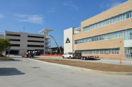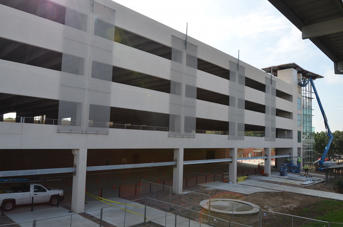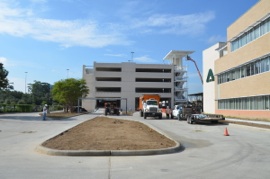 As many of our families know, the new multi-storey parking garage is almost finished.  The pick up and drop off areas are already operational on a limited basis, and we are hoping that the main part of the new structure will be opened no later than when we return from the fall break on Monday 8th October.  The photos below show the progress this week.