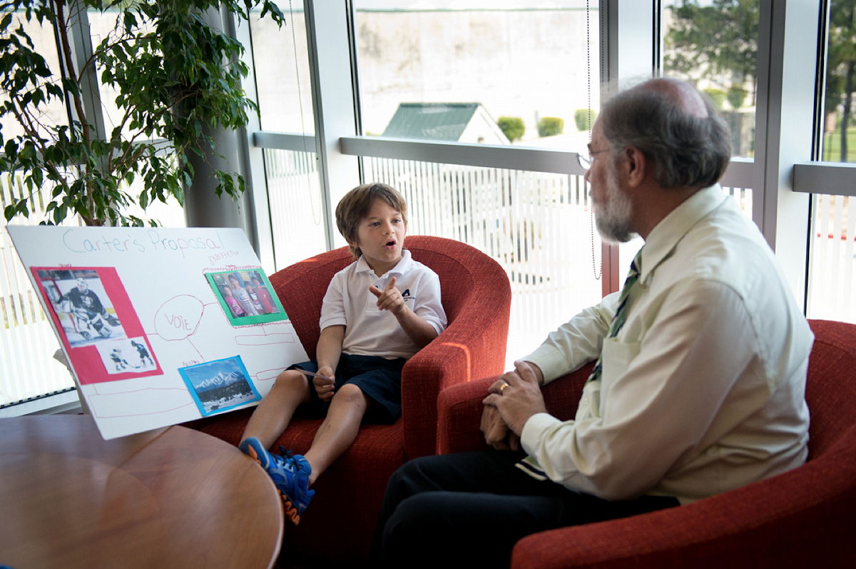 I had heard on the grapevine that Carter and some of the other 1st graders had a few concerns that improvements were needed in the school.  Specifically, they wanted Lower School students to go on Fall Trips like the Middle and Upper School students (Fall Trips are our overnight trips to various parts of Texas that took place on 13th and 14th of this month).  The rumors that the 1st graders were anxious about this turned out to be true – Carter arranged for a formal meeting with me to present a proposal.