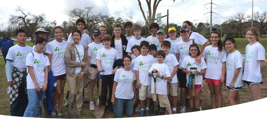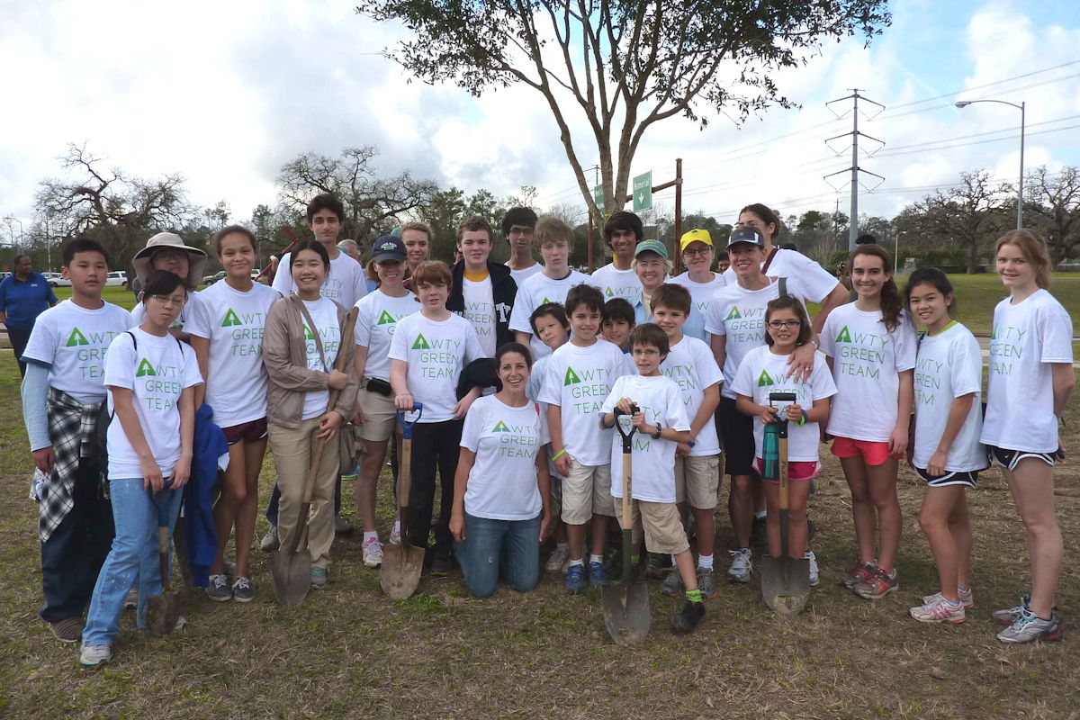 The photo at the top of this blog shows the Awty Green Team at the Arbor Day tree planting at Memorial Park held last Saturday (26th January). The group’s leader, Ms Kristi Winegarden, is in the front of the group, while Houston’s mayor, Ms Annise Parker, is in the middle (she is the only one not wearing a white Green Team t-shirt). The group is standing in front of the 3 millionth tree planted. (Thank you to the APPA’s Sustainability Liaison, Ms Leslie Nogaret, for the photograph).