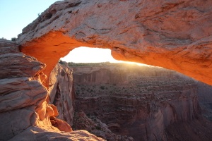 One morning while in Moab, I managed to get up an hour and a half before dawn in order to drive out to Canyonlands National Park and watch the sun rise through Mesa Arch in Canyonlands National Park. The photo at the top of this blog and the one to the right are just two of a large set of images I managed to get as the sun rose. When I experience this kind of visual splendour, sacrificing a bit of sleep loses all