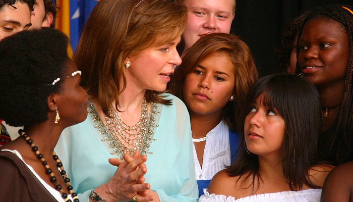 UWC President, Her Majesty Queen Noor of Jordan, chats with students at the opening of the United World College of Costa Rica