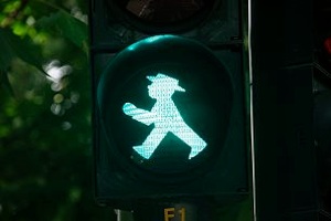 The Wall featured in several of our other stops, including two sections of the city where remnants of the Wall have been left standing.  Even today, almost 18 years after the Wall fell, the differences between East and West Berlin remain stark.  The West is easily seen to be the more affluent area, while many remains of Soviet influence remain in the East, including the huge Soviet War Memorial in Treptower Park, the huge socialist high rise housing blocks, and even the iconic bowler hatted traffic light man on the pedestrian crossing lights.