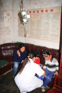 After lunch, we visited two village clinics, one recently built and the other desperately in need of replacement.  The first, the new clinic, was in Machang village.  A quick tour of the clinic confirmed the propensity to use intravenous drips to treat a wide variety of conditions in rural China.  Three patients were all receiving drips, one for a cold, one for a skin condition, and one for menstrual difficulties.