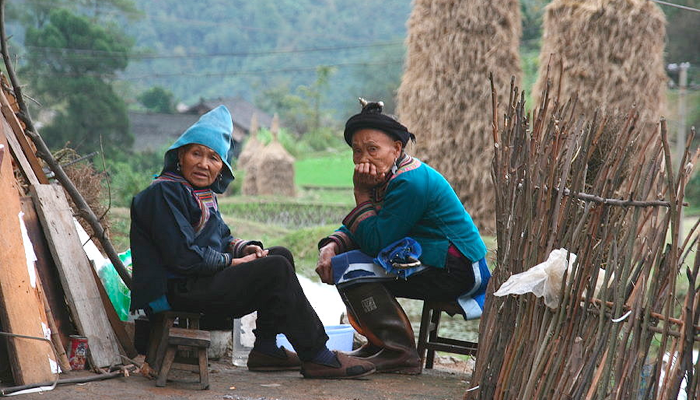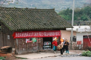 The visit was a great success in every way.  As we arrived in the village, we were greeted by many of the local people, the women clothed in their finest Miao dresses and offering welcome drinks from saucers.  We were then treated to a Miao dance beside the busy roadway in front of the medical clinic.  Chengzhong’s medical clinic is a woefully inadequate old leaning timber structure with the inside walls covered in recycled disassembled corrugated cardboard boxes to keep out the wind.  A long question-and-answer session with the village doctor revealed the difficult conditions and sacrificial nature of her work, together with the extraordinary commitment of the doctor to her 24-hour calling.  The clinic was so small that we could see the entire operation by looking in through the open frontage from the street – although the elderly gentleman receiving an intravenous drip must have been a little surprised at the keen interest being shown in his treatment.