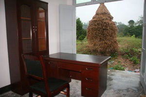 Construction of the clinic in Majiang had only been finished a couple of weeks before our visit, and the electricity would have been connected on the day of our visit if it had not been for the heavy rain.  The clinic is very well situated on an elevated piece of land beside the river, accessible by a narrow concrete walking bridge across the stream.  We spoke to the village doctor (who had been present at the opening ceremony for the clinic in Gonghe) who said she was hoping the new clinic could commence operations in a week or two.