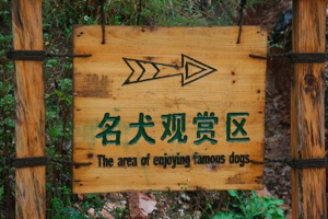Having completed our visits to all the GCAT-sponsored health clinics, the Health Bureau officials were keen to show us two of the sites of Xiasi, the nearest township to our clinics.  Our first stop was the kayaking course on the Qingshui River that was used for the training of China’s Olympic team. Claimed to be the best such course in Asia, it was an impressive sight, especially given its spectacular setting beside the limestone cliffs and rushing waters of the river.  It would probably have looked even better on a fine day when kayakers were using the course to practise.  Our second sight was a ‘farm’ where local dogs are bred as watchdogs and guard dogs.  The dogs were of a distinctive local breed, known as Xiasi dogs, all white in