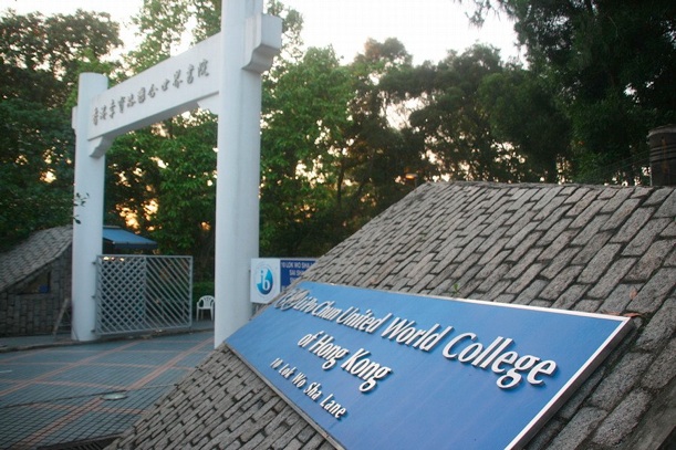 The front gate of Li Po Chun United World College celebrates its identity as an “IB World School”