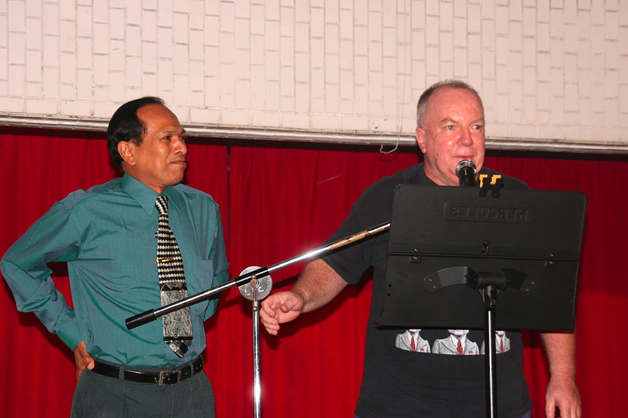 Saturday evening was the time scheduled for the 2nd Year students’ Graduation Dinner.  Because of the hectic nature of the week, I had still not written my speech for the dinner, so most of the afternoon was spent doing that – in between helping Di with some lesson preparation of her own that she needed by this morning.  The speech writing was interrupted at 4:00 pm when I was scheduled to do my share of supervising with room clearances, which is the process of clearing out rooms prior to departures.  I was allocated to Block 4 where, coincidentally, the deadline for completing the process was 4:00 pm.  Perhaps not unexpectedly, there were a few students still (I wish I could frantically) trying to finish their clearances.