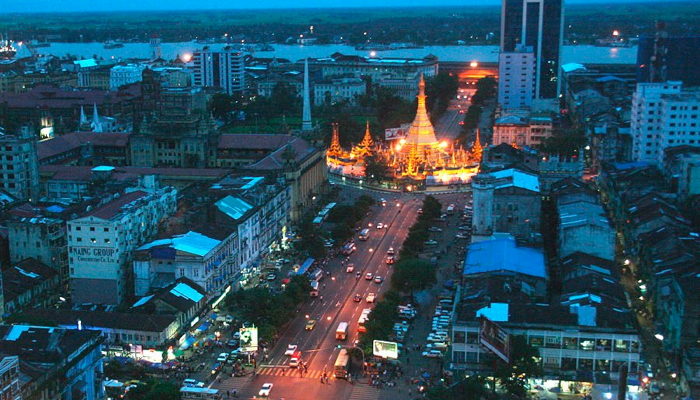 The Sule Pagoda dominates the centre of Rangoon (Yangon), Burma’s (Myanmar’s) largest city