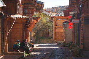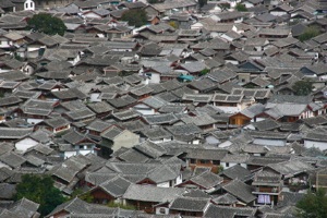 The fifth and final focus area was the large town on Lijiang.  Lijiang was the traditional cross-roads of the Tea-Horse Route, and the centre of the town - Sifang (“Four Winds”) Square - remains a meeting place and active market area.  Lijiang has been declared a world heritage area because of its ensemble of narrow cobble-stoned streets, lined by open-fronted wooden shop-houses with old, tiled, curved roofs and a network of streams carrying the melting snow from nearby mountains through the town.  The canals feature a very sensible ‘three pond’ system for water use in many places in the town whereby the most upstream pond is used to draw drinking water, the next (middle) pond is used for washing vegetables and the third (most downstream) pond is used for washing clothes.