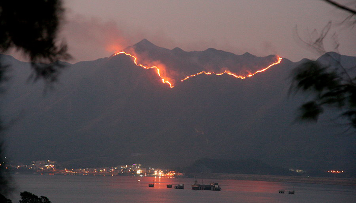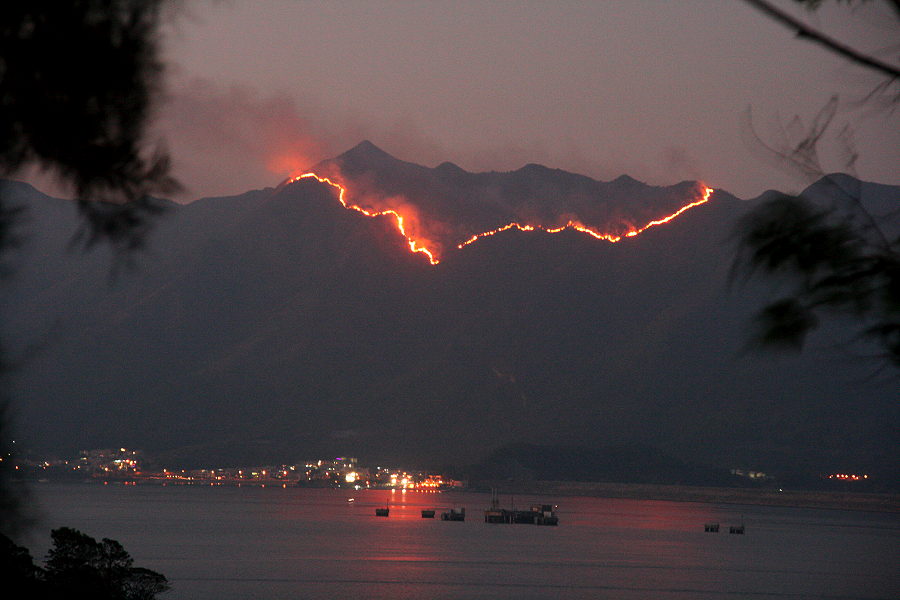 The ‘not-so-controlled’ burn on the hills across Tolo Harbour, as seen this week from our home
