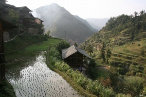 Tuesday afternoon was spent in a small village that was closer to Cengong township.  La Qia Fan was a rural village that had received government funding for infrastructure (such as roads, houses, and biogas tanks), and had thus developed into a ‘model village’ for villagers from other areas to come and observe, and hopefully learn from La Qia Fan.  In this way, La Qia Fan had developed into a centre for the diffusion of new technology and new ideas for Cengong county.  The village even had a laboratory that was developing HYVs (high yielding varieties) of rice suited to Guizhou’s climate.