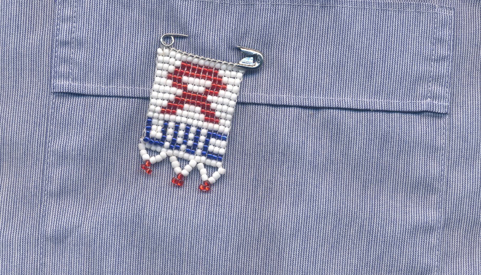 NOT the new UWC branding - this was the beadwork badge that I wore on 1st December , which was World AIDS Day.