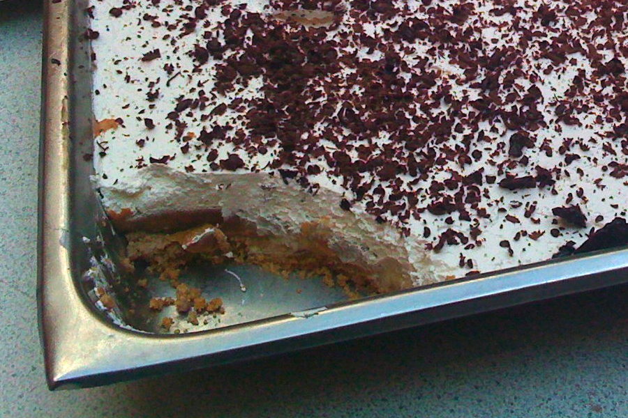 For those who don’t know what banoffee pie is, it is an English dessert made from bananas, caramel, cream and boiled condensed milk on a crumbled biscuits base.  You can see a big tray of it sitting on the table in the photo above, and a closer view to the right (click to enlarge).  I’m sorry that this close view is not as clear as I would have liked - I should have taken a larger helping to make the cross-section clearer.