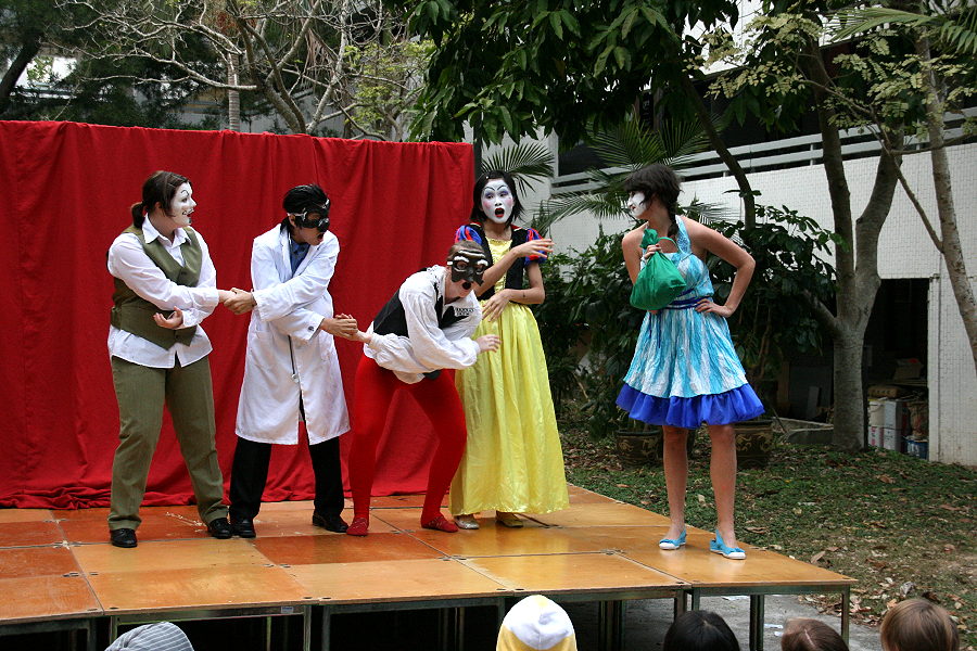 Late last week, I attended the Year 2 students’ major performance of ‘The Visit’ by Friedrich Dürrenmatt at the Fringe Theatre in Central.  This was an epic performance - almost 3 hours long - in which the actors each played several characters without ever leaving the stage.  The play was thoroughly enjoyable in its own right as well as being a fitting tribute to two years of outstanding study in Theatre Arts by our students.