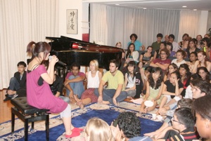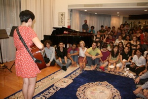 UWC Day concluded with a fabulous music concert in the traditional location - our home - at which students performed for each other. The concert, which ran from 5:00 pm to 6:30 pm, was entirely organised by two students (Rudy from the Czech Republic and Cristobal from Mexico), and it provided a very fitting end to a great day of celebrations. This was the first music concert for this academic year, and the quality of the music was both sensational and humbling. The only problem was trying to squeeze everyone inside! A measure of the quality of the performances was that Keith Clark, who was attending the concert to relax after a long day of speech-making, workshop-leading, staff-meeting-attending, and so on, felt compelled to rise at its conclusion and congratulate the students on the amazing quality of the music they had presented. I happily echoed his sentiments, as it was a privilege to have such wonderful music brought into our own home.