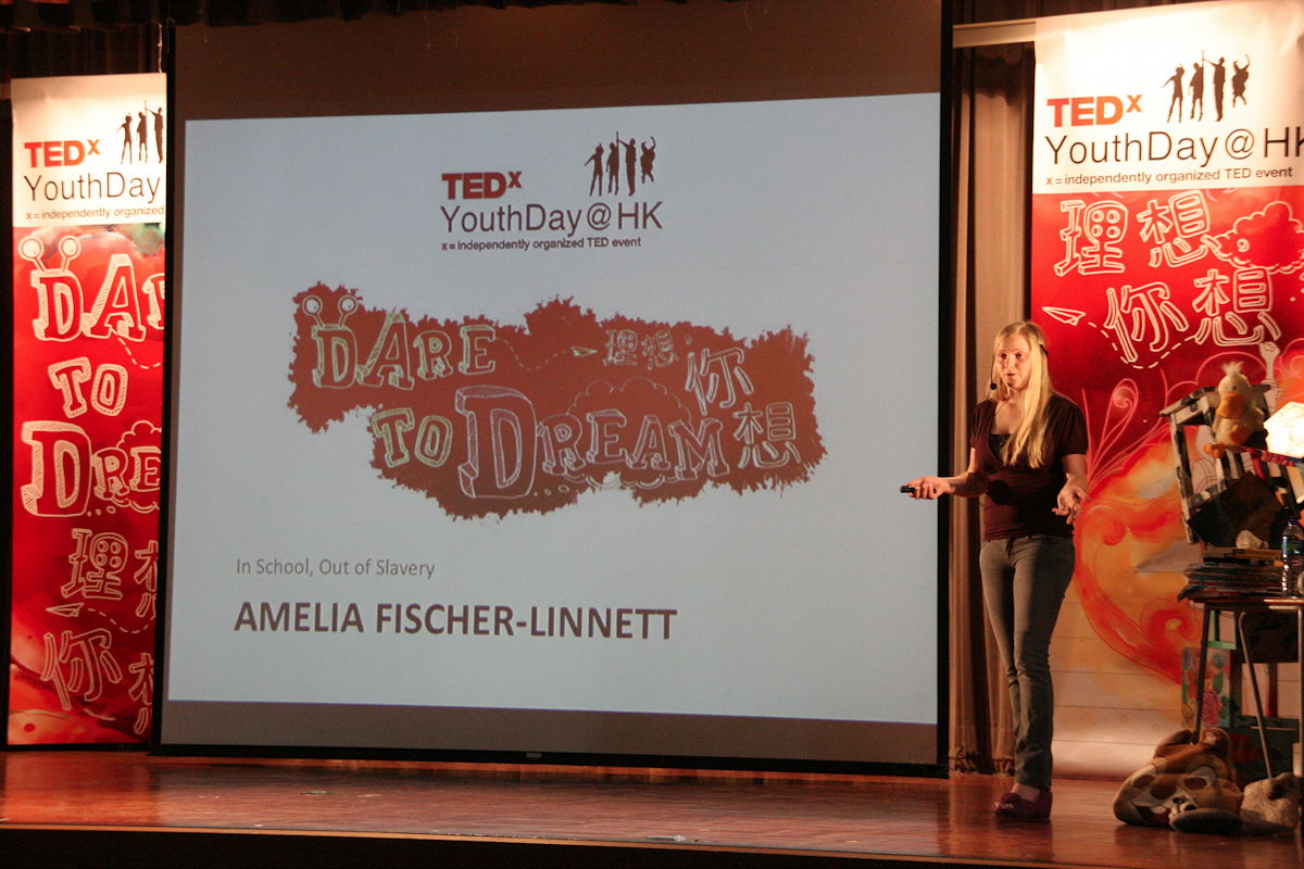 For those of us from LPCUWC, the highlight of the day was undoubtedly the talk presented by own student, Amelia Fischer-Linnett. Originally from Seattle in the US, Amelia has been one of the students in the College’s Traffick Link group that has been working to support victims of human trafficking for sex slavery in Cambodia. Amelia had travelled with fellow students to an AFESIP centre in Cambodia, and like her fellow students, had been profoundly affected by the experience. Amelia gave a very clear, well informed, well presented and personally passionate insight into the issue of human trafficking, an issue that is unfortunately rarely thought about and not well known in Hong Kong.