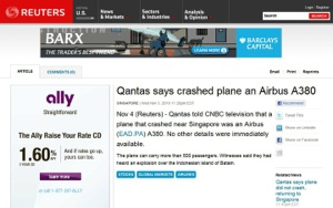 “This begs the question; did Qantas tell CNBC television that the plane crashed, or did they say that the plane involved in an incident near Singapore was an Airbus A380? Did CNBC report that the plane crashed? Or did Reuters add that? Whichever, for 17 minutes until it was corrected, the impact of this crisis on Qantas’ reputation meant nothing to the families of the 400+ people on that flight, who would have been distraught and suffering a level of anguish that was entirely avoidable if a serious mistake in news reporting, like this one, didn’t occur.
