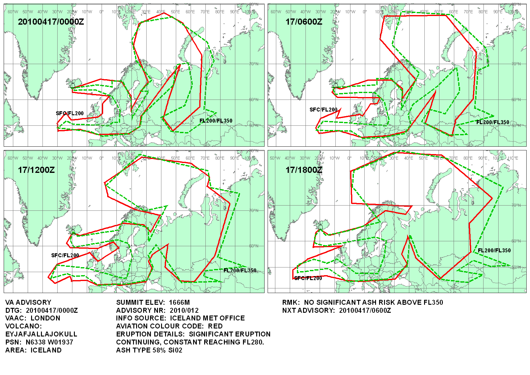 Anyway, Eyjafjallajokull now seems to have entered very different phase which is as "gentle" as the volcanoes in Hawaii. The reason that the initial ash cloud was so large was that millions of tonnes of ice that built up since last eruption in 1823 melted and collapsed into the volcano when it began erupting. When it did so, superheated steam began generating large-scale explosions that shot the ash up into the atmosphere. Fortunately, that supply of ice has now been exhausted and the explosive ash is no longer being produced.
