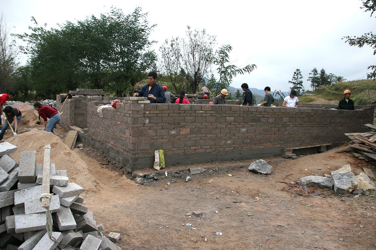 The photo at the top of this blog shows students from the Global Concerns Action Team (GCAT). They were in a team of 12 students that I took to Guizhou to help build a new medical clinic in Chengzhong, a poor Miao nationality village in Majiang, which is an isolated rural county in China’s Guizhou County. The left photo (below) shows the clinic under construction at the time the GCAT students were helping. The right photo (below) shows the completed clinic, which is now making a significant impact on improving the health of local villagers in Chengzhong. Both photos can be clicked to enlarge.
