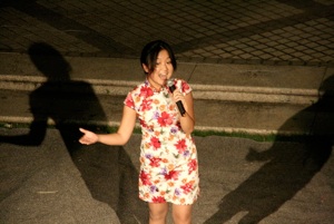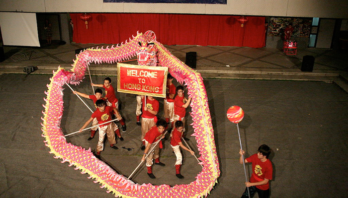 And then, starting at 7 pm, our 2nd Year students presented a wonderful 45 minute long welcome show with a Chinese theme in the Courtyard.  The show opened with a lion dance, and then proceeded through several acts of singing and dancing (including the fabulous ‘Kowloon Hong Kong’ dance that my students presented a few weeks ago at June 9th Secondary School in Pyongyang), finishing with our perennial highlight, a dragon dance.