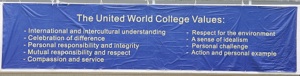 On the eastern side of the Courtyard, the core values of the 13 United World Colleges are listed: