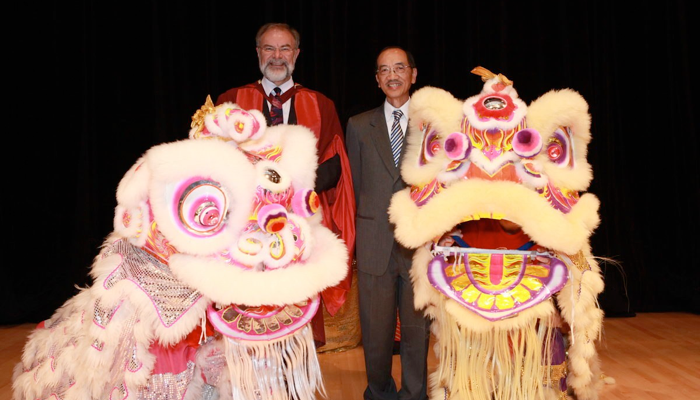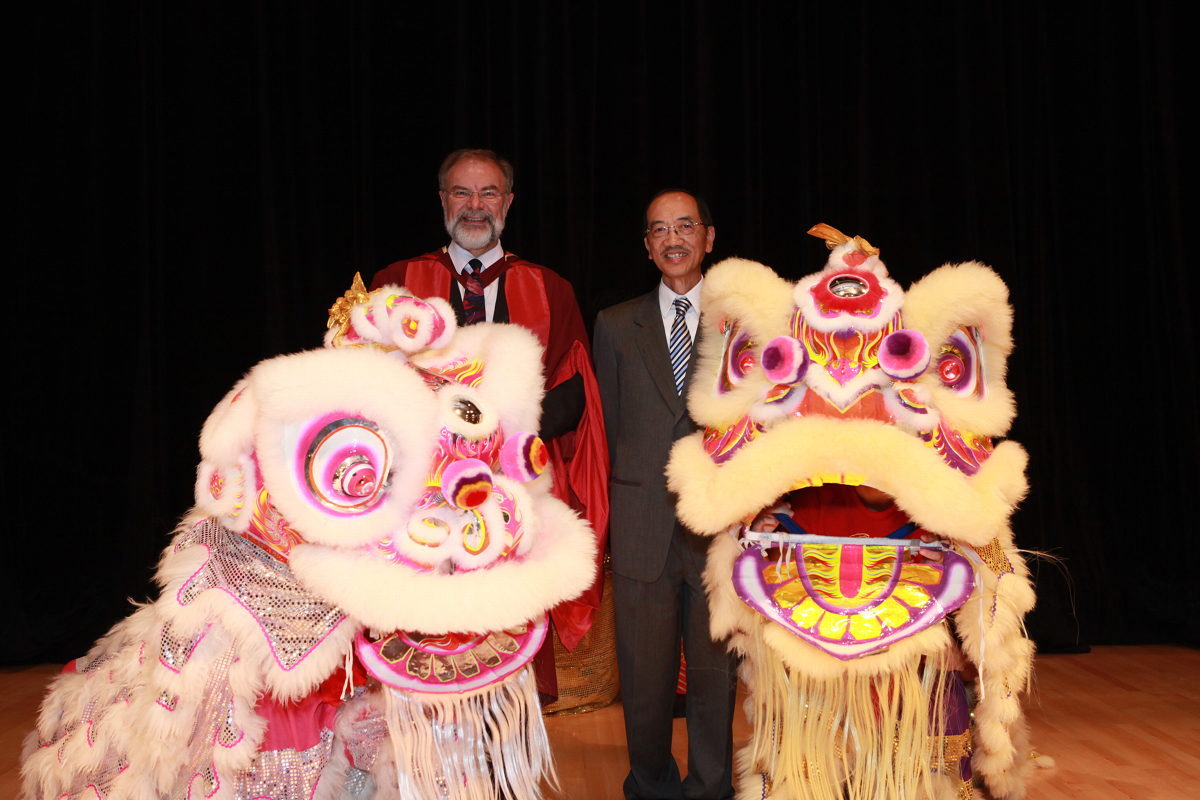 With the Chairman of the Board, Mr Anthony Tong, during the lion dance at the start of Monday’s graduation ceremony.