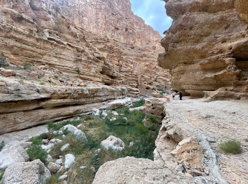 Wadi Shab’s name in Arabic means “the gorge between cliffs”. The name is apt. Unlike most wadis in Oman, Wadi Shab is a small creek that flows through a deep, steeply sided gorge, and a walking track that follows the gorge is a popular (and fairly easy – mostly) with visitors.