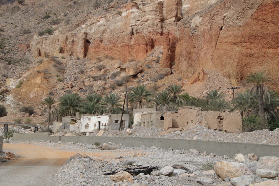 I spent some time looking through the irrigated farming areas as well as the old part of town with several mosques and watchtowers. As I was nearing the end of my explorations, I was wandering along a falaj and I saw a group of men who were sitting in the shade of a huge tree. More precisely they saw me and rather insistently invited me to join them, share some coffee and have a halting conversation. The Arab reputation for welcoming travellers was well and truly justified by their heartfelt hospitality; I think they would have been happy if I had stayed all day.