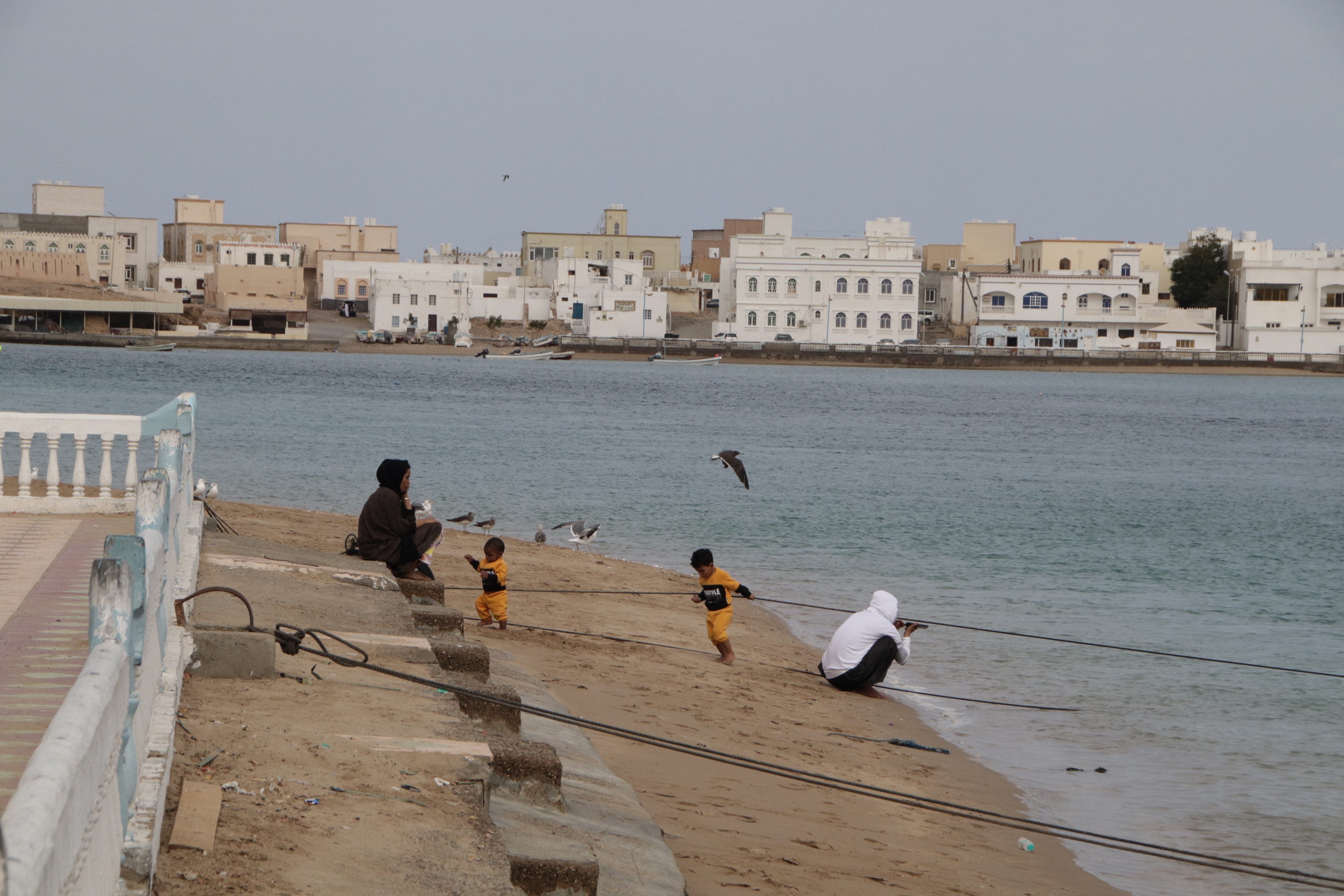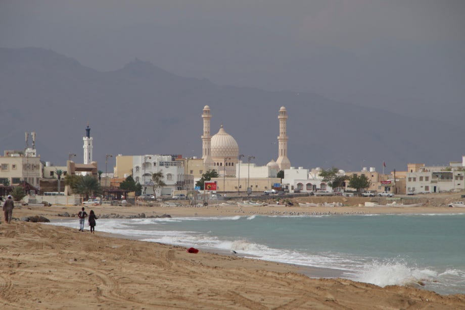 I continued to the eastern end of the Corniche, which really is Sur’s scenic highlight. Two forts and mosque rose sharply just across a small body of water at the end of the beach, while a lighthouse and neat line of white and pastel historic buildings in a village named Ayjah lined the water of the lagoon. When the sun shone briefly but brightly, it was a picturesque scene that embraced many of Oman’s unique characteristics and history.