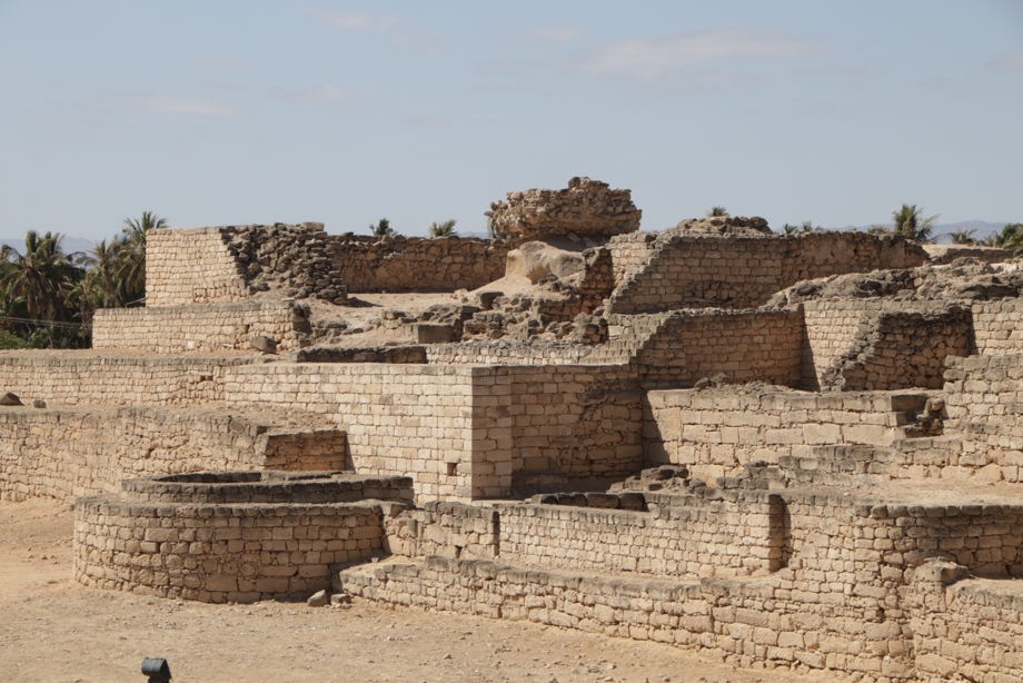 My visit was a real education. Situated on a strip of land between the ocean and a small inland lagoon, there has been a settlement on the site since about 2500BC, which was during the Bronze Age. At the end of the lron Age (between 5AD and 6AD), the settlement became a city with administrative functions, and during the period 750 to 950 it became an active commercial centre, expanding to become a regional power between 1000 and 1200. It was a major trading centre, focussing especially on the export of frankincense, with trading links as far away as India, South-east Asia, China, and the ports of East Africa by the year 1300. Marco Polo apparently visited in 1280 and was impressed by the colour and vibrancy of the place, especially its trading activity.